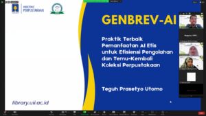 - Teguh Prasetyo Utomo S.I.Pust, pustakawan UII, memperkenalkan GENBREV-AI, sistem pemanfaatan AI secara etis untuk meningkatkan efisiensi pengolahan dan temu kembali koleksi perpustakaan.