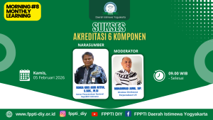 Forum Perpustakaan Perguruan Tinggi Indonesia (FPPTI) Daerah Istimewa Yogyakarta (DIY) menggelar acara Monthly Learning ke-8 (Morning #8) pada Kamis 5 Februari 2026 melalui media zoom meeting. Tema yang diambil pada acara tersebut adalah: Sukses Akreditasi 6 Komponen. Narasumber pertemuan tersebut adalah Bapak Renda Kris Ardi Artha, S.Sos., M.Si. yang merupakan Asesor dari Perpustakaan Nasional Republik Indonesia. Selanjutnya, moderator webinar adalah Bapak Muhammad Jamil, SIP. yang mana beliau adalah Pengurus FPPTI DIY juga Direktur Direktorat Perpustakaan Universitas Islam Indonesia (UII). Acara dimulai pukul 9.00 WIB dengan diawali sambutan oleh Ketua FPPTI DIY Ibu Risty Prasetyawati, MIP., dan berakhir pada pukul 12.00 WIB. Tercatat jumlah peserta sebanyak 503 orang, berasal dari seluruh Indonesia, terdiri dari pustakawan universitas, sekolah, dan pemerhati perpustakaan. Peserta sangat antusias mengikuti acara webinar tersebut. Pada akhir webinar, peserta mengisi link evaluasi dan mendapatkan sertifikat elektronik.