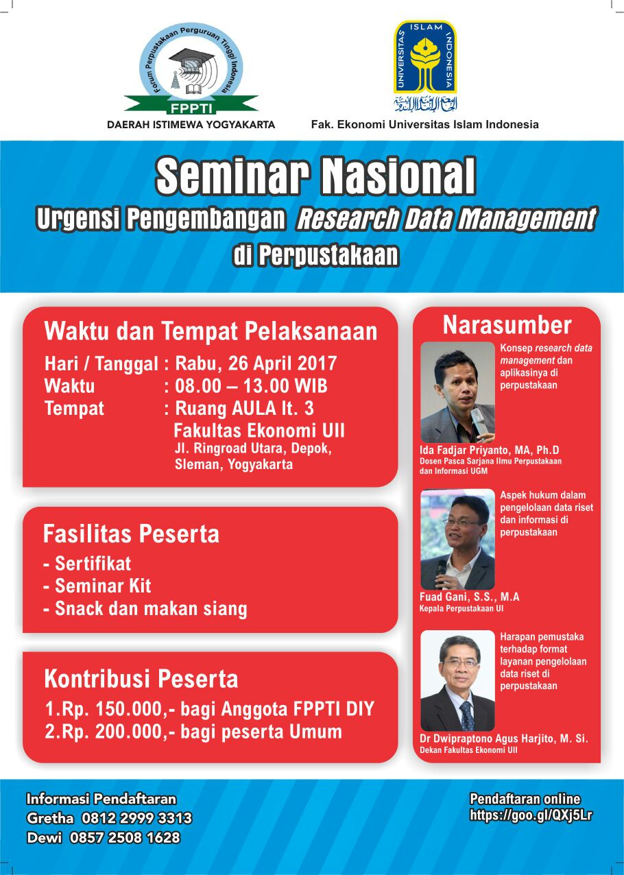 SEMINAR NASIONAL URGENSI PENGEMBANGAN RESEARCH DATA MANAGEMENT DI PERPUSTAKAAN